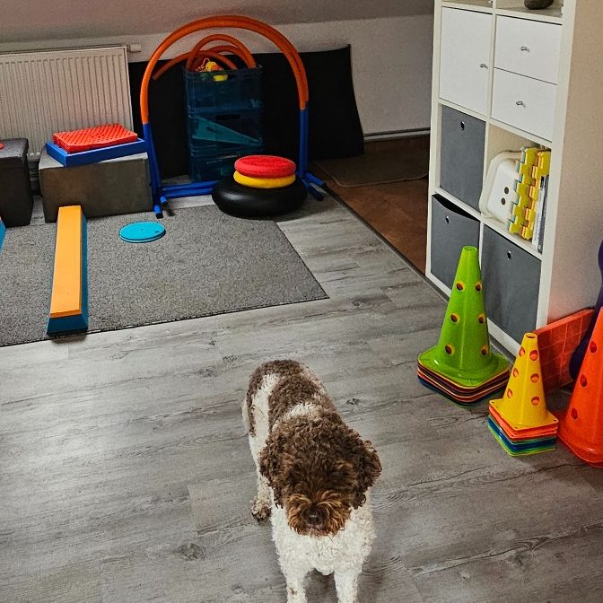 Ein besonderes Anliegen ist mir, dass es meinem Hund gut geht. Daher freue ich mich, dass Bella`s Physioecke fertig ist. Jetzt können wir weiter machen mit den Übungen für Ihre Balance und Hüfte.