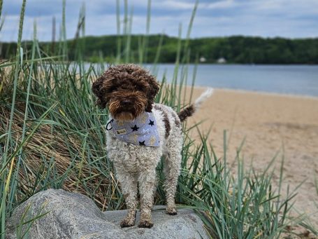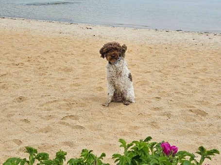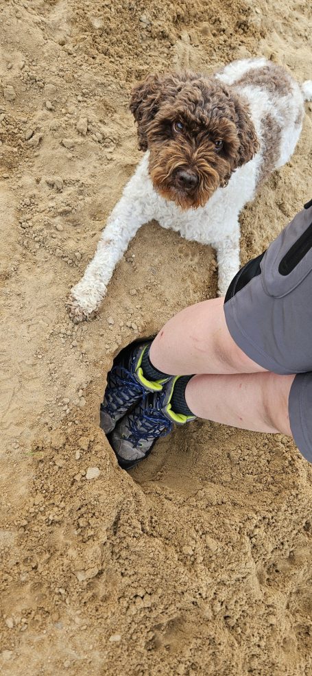 Bella geht im Sommer gerne ins Wasser, buddelt löcher und rennt im Sand auf und ab.