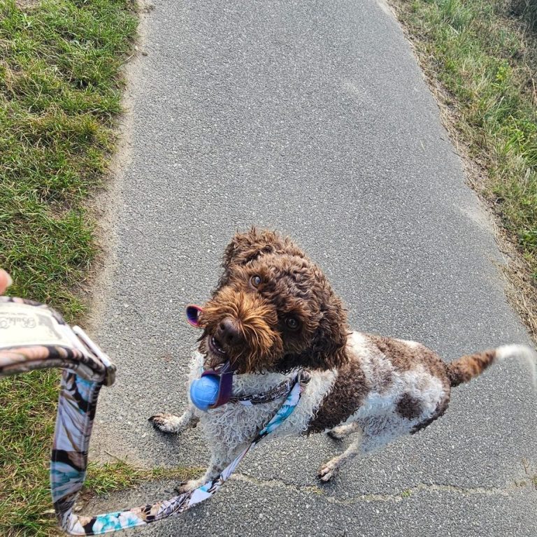 Daher gebe ich ihr gerne eine Aufgabe, wie z.B. den Ball (von Bubitex) tragen. Dann können wir ohne große Haltestopps den Weg entlang gehen.
