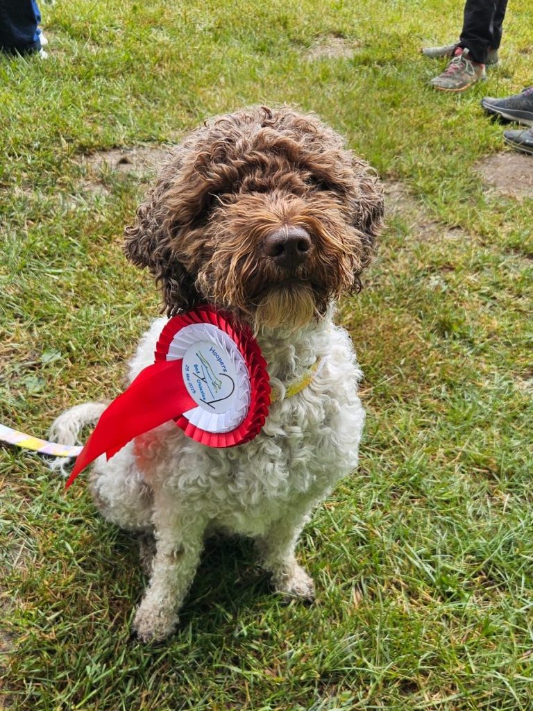 Platz 3 Bella hat eine Schleife bekommen. Wir haben den 3. Platz gemeistert.